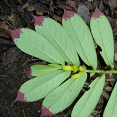 In Kichwa this plant is called yawar panga “blood leaf” because the tips of the leaves look like they have been dipped in blood. Perhaps for this reason a tea made from the leaves is used to lessen menstrual or postpartum bleeding. The plant is also called Machora Panga “childless woman plant because larger doses are said to end menstruation entirely thus inducing sterility.